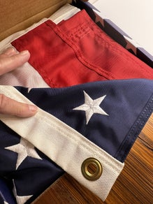 Our top selling item is our US Flag. All Made in America. From 4" x 6" flag on a stick, 12" x 18" for grave markers and 3' x 5', the most popular home size.